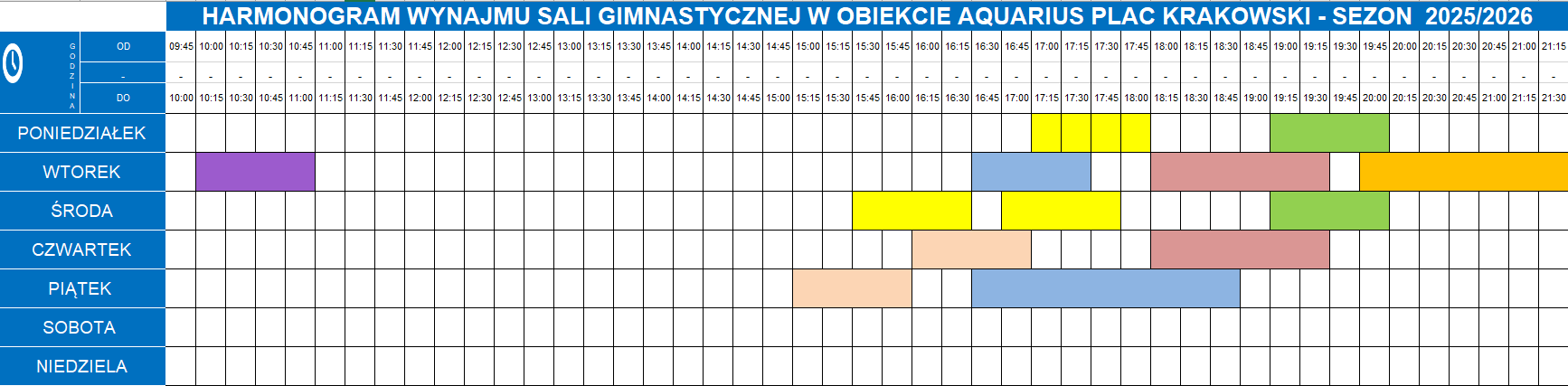 Równocześnie przypominamy, iż harmonogram rezerwacji z powodów organizacyjnych może ulegać zmianom i korektom na 30 minut przed planowaną zmianą. Prosimy o wyrozumiałość.