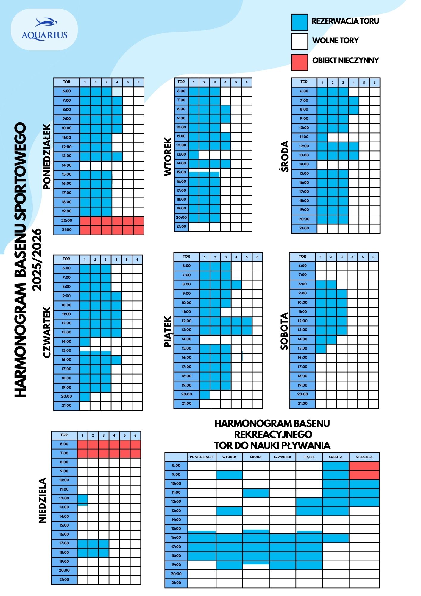 ZAPRASZAMY DO ZAPOZNANIA SIĘ Z HARMONOGRAMAMI REZERWACJI W OBIEKCIE AQUARIUS KOPERNIK ZABRZAŃSKIEGO KOMPLEKSU REKREACJI!